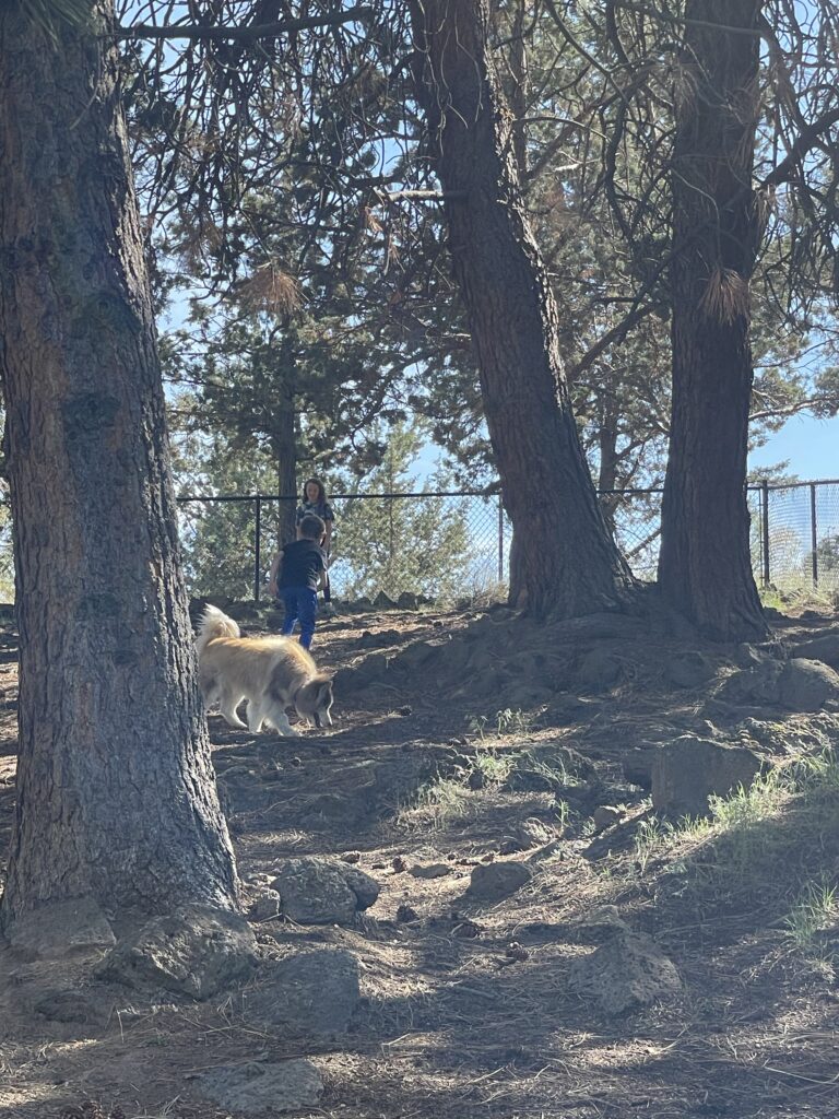In the RV park in Bend, Oregon, there was a hot tub that my brother and I were able to go in. The RV resort had the best dog park we have come across so far on our trip. Dad and I went to the dog park often with Hunter, however, sometimes we went without him. This dog park was the best so far because it was hilly and when we were in the lower section it looked as if Sassy was a wolf wandering in her area in a zoo or something like that. One other thing I really liked was that I was able to ride my scooter around the campground, and we even got a scooter for Hunter that he was able to join me.