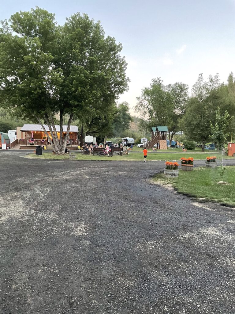 At our campground in Coeur dAlene, there are two parks but we were only able to play at one. The second one that we didn’t play at was all metal, so it tended to be pretty hot. There was a dog park and a bike area which I didn’t get a chance to do.