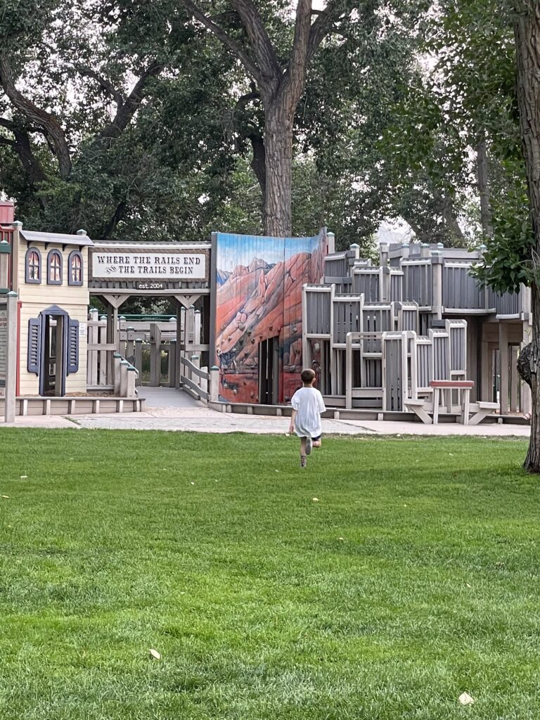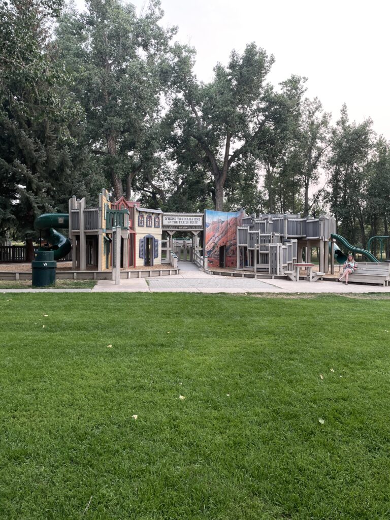 Well, we found what is sure to be one of the kids favorite parks here in Lander, Wyoming. While stopping off here for a night on the way from Yellowstone heading back home on this journey, we came across the Lander City Park. It has a neat old western theme to it.