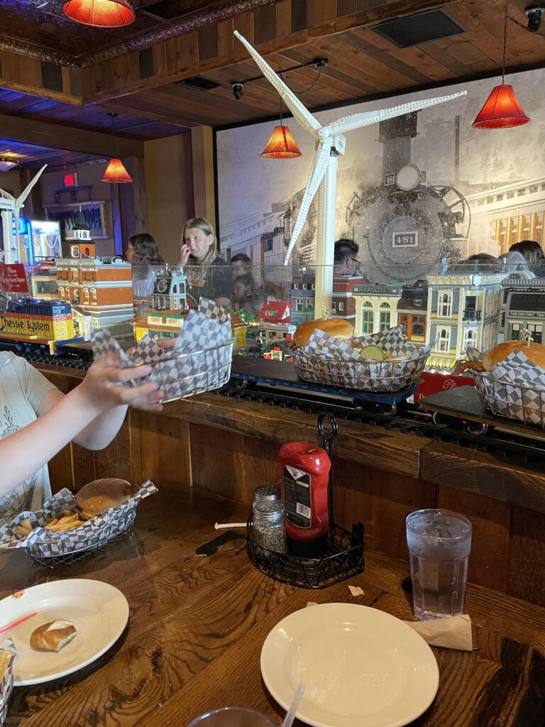 This is one of the most entertaining restaurants we’ve ever been to! The food is delivered by model trains!! There’s some good size Lego cities throughout as well! The food was pretty good as well as the drinks!